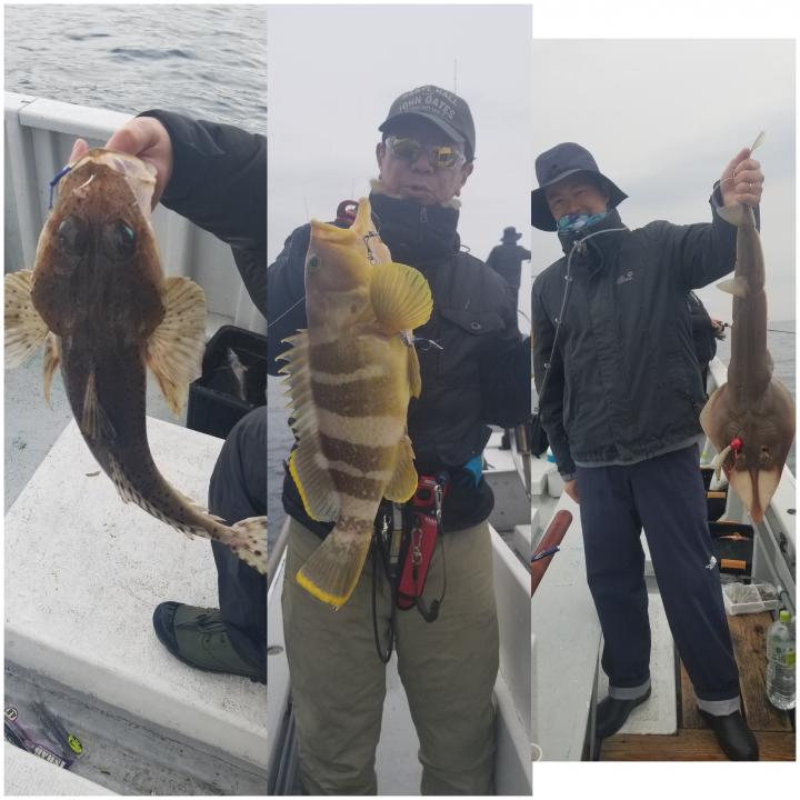 SLJでは漁礁周り、砂地とやりましたが、ベイト反応チラホラですがなかなか厳しく、アオハタ、ホウボウ、アヤメカサゴ、ウッカリカサゴ、ムツ、ワニゴチ、サカタザメなど魚種多彩でつれましたが、水温低くイマイチな口使いっぷりでした(ToT)